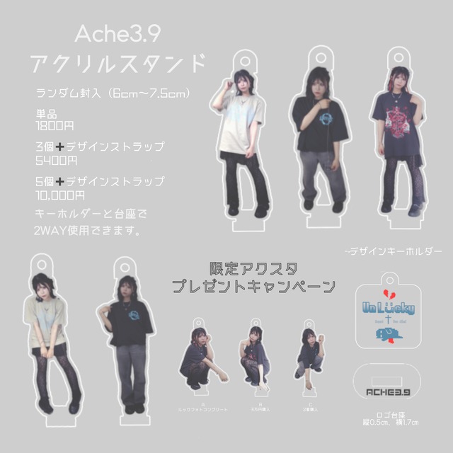 ランダム封入。 こちらは3個セット+デザインキーホルダーの注文ページになります。 ランダムのためデザインが被る場合がございますのでご了承ください 本体サイズ: デザインによって異なります。 ※準備ができたご注文より順次の発送対応となります。 ご購入商品やご購入のタイミング等によって、発送日は異なりますので予めご了承ください。 発送まで最大1ヶ月ほどお時間をいただく場合ががございます。予めご了承ください。 受注商品はキャンセル不可です